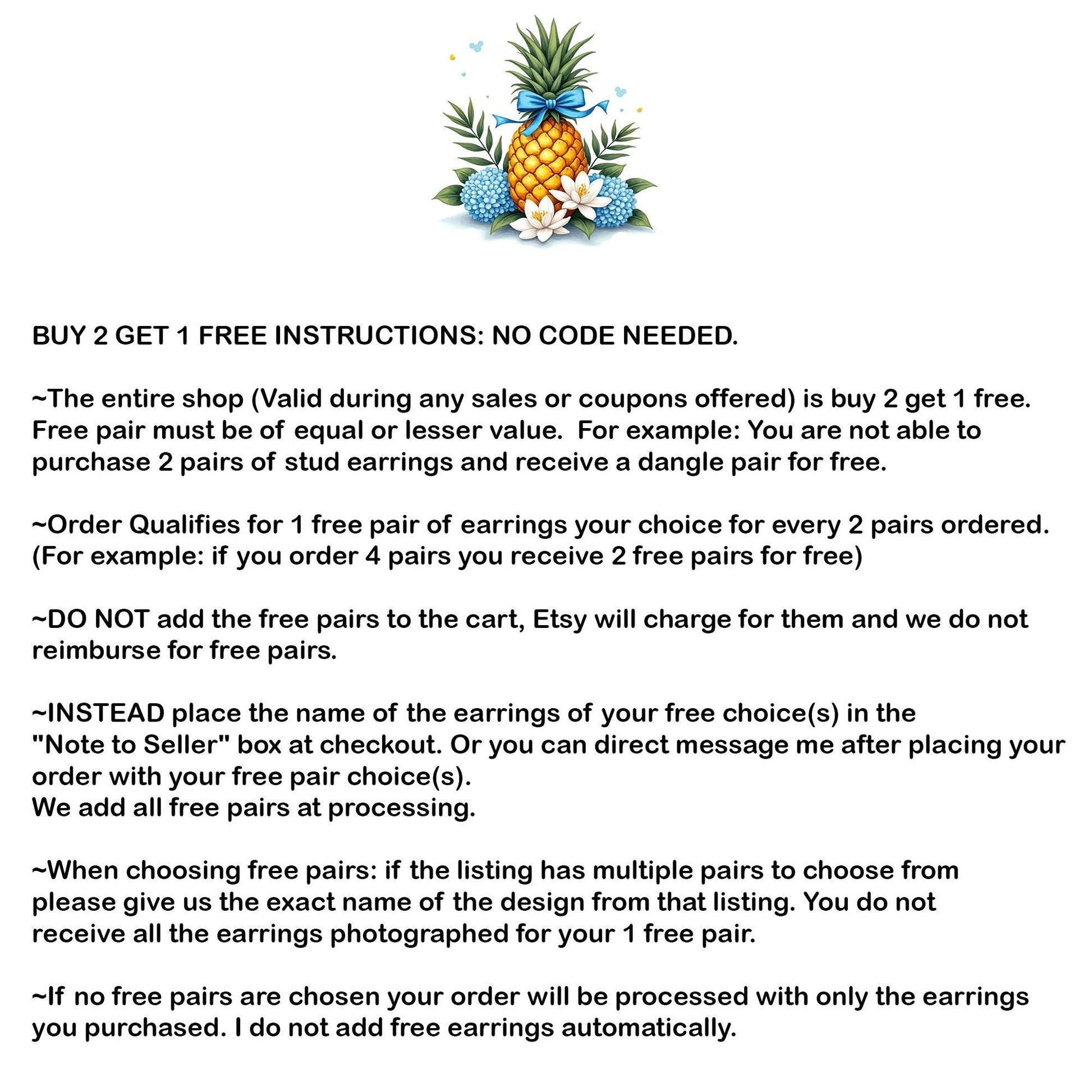 Disclaimer: Due to the earring making process there can be slight variations in size, color, and shape. We work to get each earring as close to perfection as we can. Please keep in mind computer screens and phone screens can alter colored images but we work to keep colors as pictured.